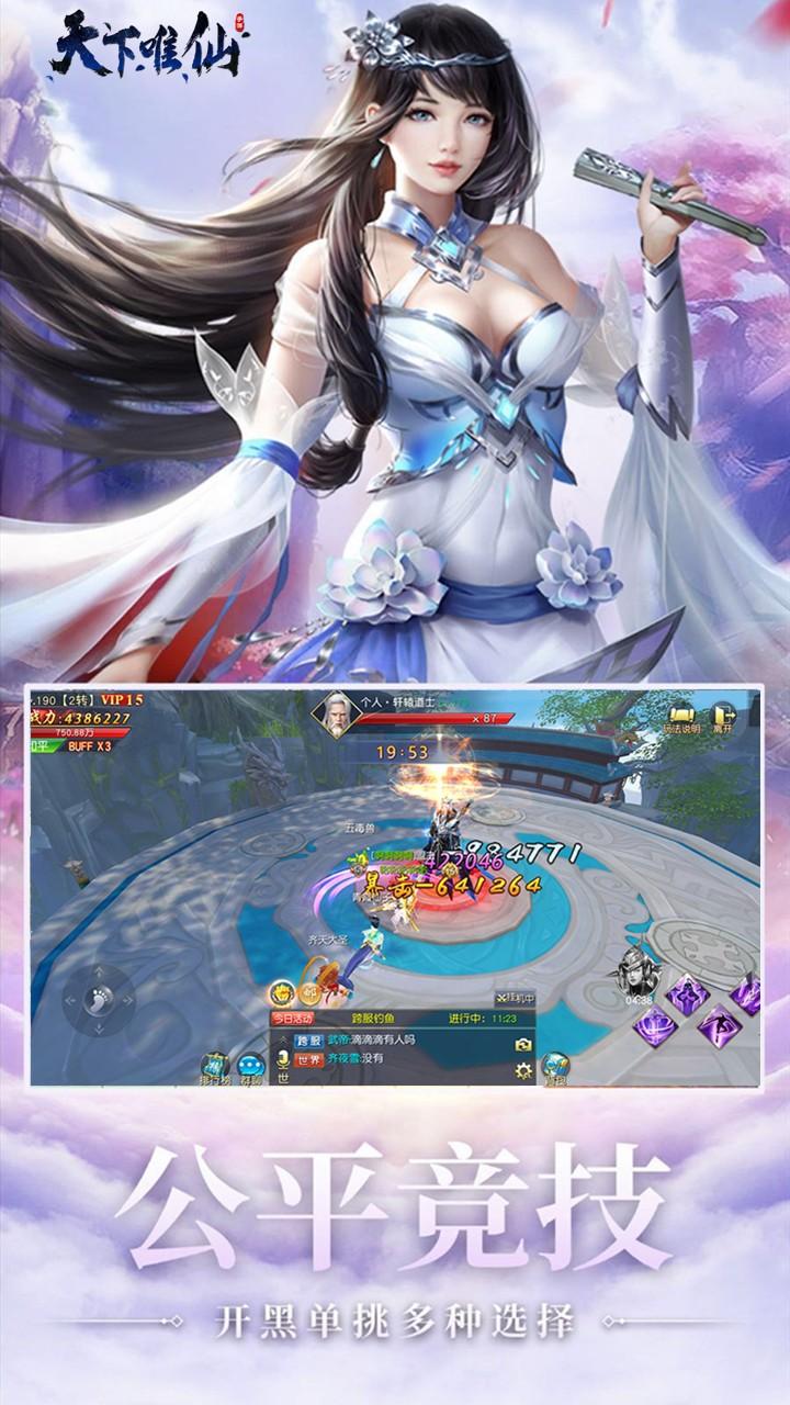 1、天下唯仙手游将各种福利礼包直接分发给各位玩家,甚至免首充的各种特权都能在这里享受到。在这款游戏中有让你艳压三界的各种绚丽时装,也有跨服竞技的热烈玩法,从现在起下载游戏跨服争霸天下,唯你踏足登仙