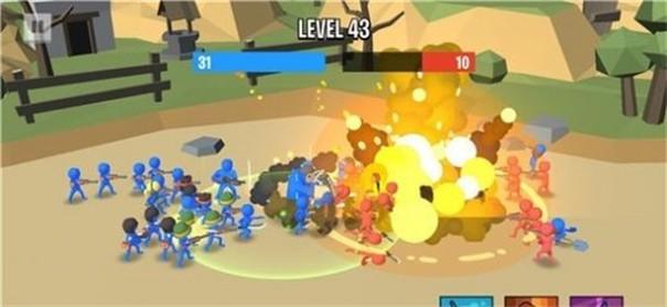 火柴人作战小队里采用了极简的3D游戏场景吗,玩家可以专注于两个阵营的对战,随着等级的提升更多的兵种和强大的武器会被解锁,让玩家的军团配置更完善。