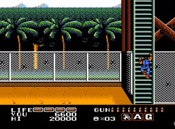 这是一款早期游戏,游戏的内容并不丰富,并且操作性也很普通,玩家在中将通过扮演的是潜入监狱的特种兵,只要刺手空拳跟一身武艺,一路杀到敌方首脑大楼,这款游戏的在关卡设计上还是有很多优秀的地方,如果玩家只依靠简单的拳打脚踢,在过关时会感到明显的吃力,好在游戏中提供了相当多的道具有些可直接从敌人身上获得而有的隐藏在关卡的某处需要破坏某些物件才能获得,有了武器装备的帮助将大大提高过关效率。
