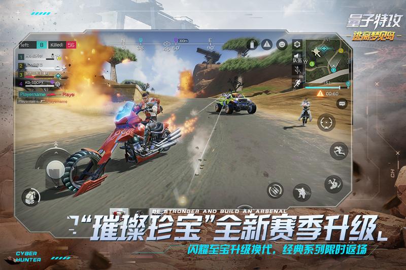 量子特攻九游版是一款卡通动漫画风的战术竞技类手机游戏。玩家化身未来战士,搭乘空天舰在30000米高空一跃而下,运用“特殊动作+枪械”与百名玩家同场竞技。感兴趣的玩家快来下载体验吧!