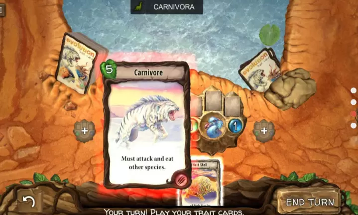 进化汉化完整版是一款背景设定在远古时期的策略卡牌类游戏,受棋盘游戏的启发,该作为数字类作品添加了许多新的标准,玩家可在卡牌的对战中体验美丽多变的生态环境,并且在其中逐渐适应、生存和发展,利用各类动物卡牌完成进攻、防守和进化。