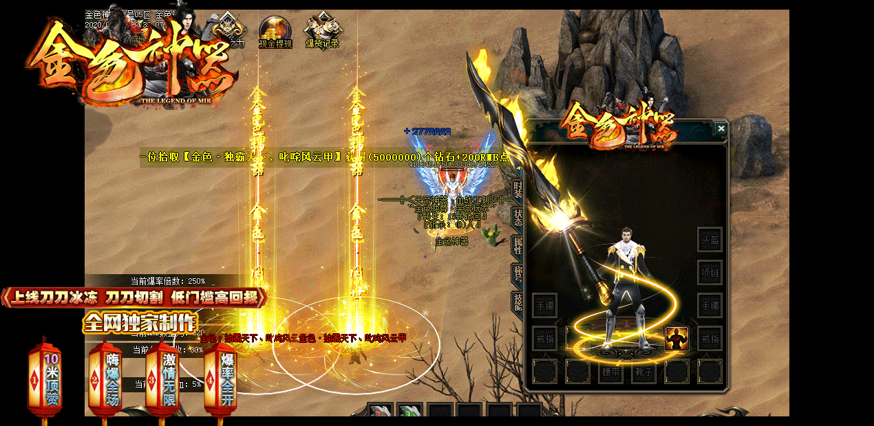 6、最新的散人传奇,平民玩家也能制霸,刀刀爆元宝。