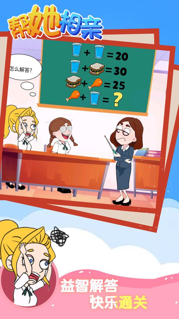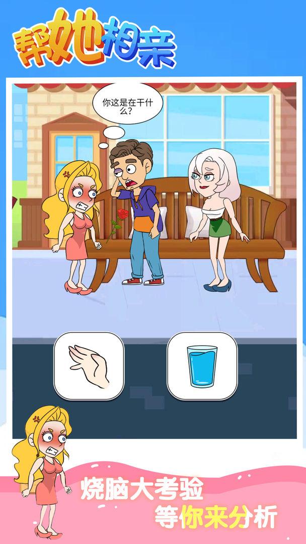 帮她相亲商城版一款轻松好玩的相亲游戏,该游戏的玩法很简单,但是有丰富的剧情,玩家需要帮助我们的主人公顺利的通过相亲,所以该游戏很考验玩家的情商哦,丰富的游戏场景和游戏关卡给玩家无限趣味,游戏操作简单易上手,是您不可错过的手游诚意之作!快来下载吧!