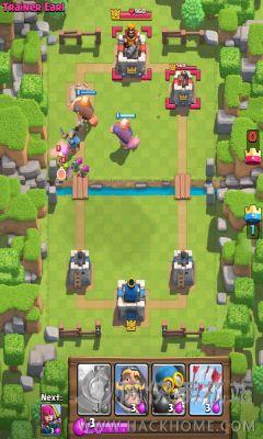 2、主要玩法是对线推塔,玩家可以通过卡牌召唤怪物和法术,攻击对方城堡;