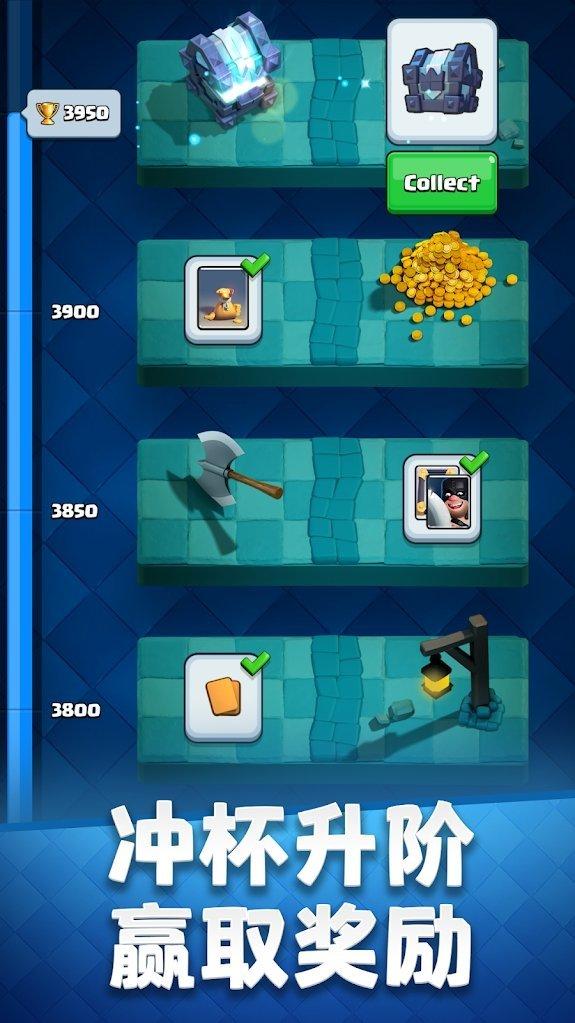● 赢取宝箱来解锁奖励、收集强大的全新卡牌并升级已有卡牌