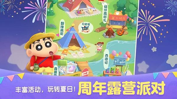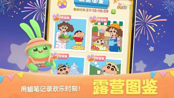 2、和小新一起参与露宿狂欢派对,完成挑战搜集各种有趣的物品和纸贴,很多元素等着你搜集;