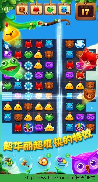 清新的藤蔓场景,明晰的面板设计,华丽爽快的特效效果,还有萌动有趣的小动物们,定会陪您度过欢乐休闲时光~