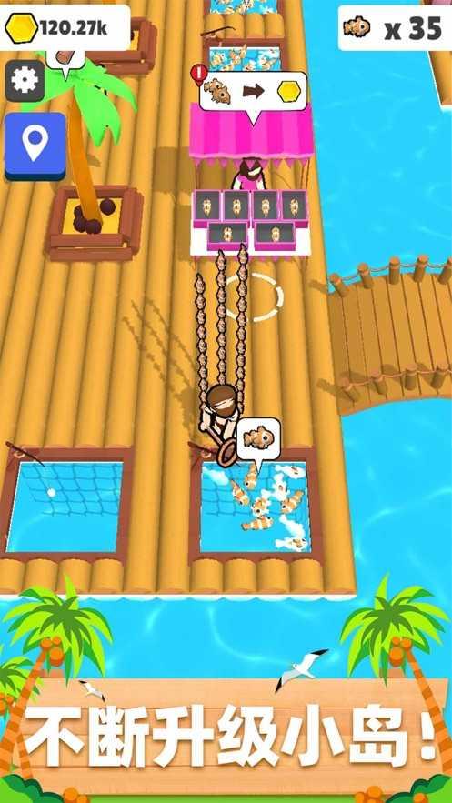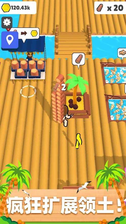 在一望无际的海洋中间,通过不断获取资源换取金币,用金币来解锁更多木筏扩展你的领地。