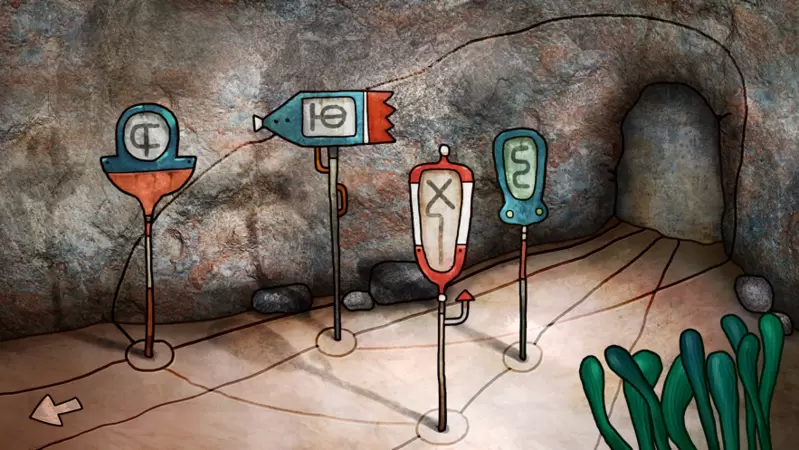 4、拿起石头扔进洞口里,应该是从左往右数,第四行的洞,拿到种子 再回到刚才的屋顶,把种子种在水里方块里的控制器拿一下 ,右边图里的水草点一下是条虫子。