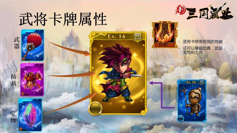 三国题材真的是广大游戏厂商取之不尽用之不竭的宝库。这个“三国霸业”也被应用到了经典的三国武将身上,以卡牌的形式出现在游戏中,玩家需要通过各种方式收集它们,集合强大的武将后,会组成精锐战斗群,挑战各种副本。