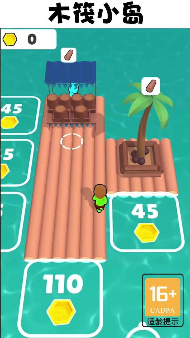 2.玩家需要达到不同的木材,材料要求才能扩张小岛,搭建房屋,小船。