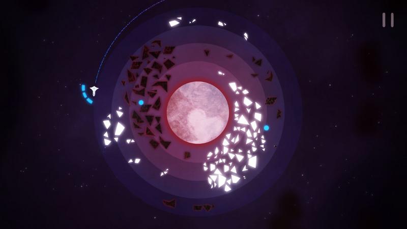 【核心玩法】:玩家通过点击萤幕产生离心力远离中心,躲避障碍,收集星球的记忆碎片;随后根据收集到的碎片,将乱序的句子排列成一个完整的故事,以此来完成主人公日记的收集。