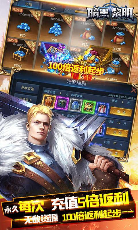 5、充值比例1:1000,所有充值档位永久5倍返利即1:5000,首充送SS英雄,极品金色神装,千万经验极致体验秒升55级!