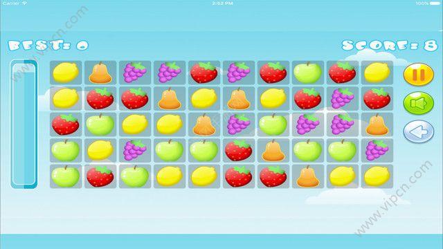 1、各种各样的水果等着你来连接消除,玩家需要连接三个或者三个以上的相同水果,即可消除。