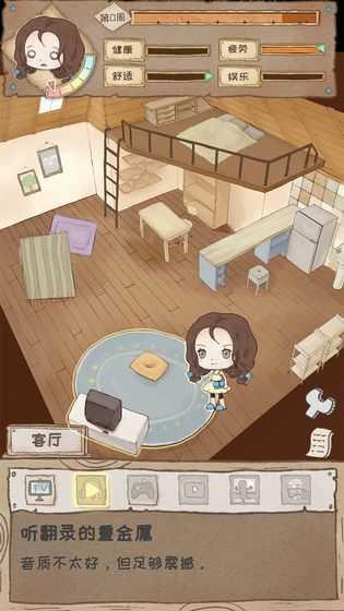 同时每个地方都有特定的活动内容,以书房为例,就是看冷笑话、随便折折纸、写流水账等等,后面的内容是未解锁的,一开始没法进行。
