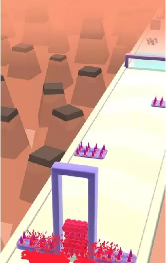 叠罗汉冲刺,在各种障碍面前毫不胆怯,士兵们正在通往挑战魔王 BOSS 的路上,魔王在路上设置了许多障碍,有限制形状的栏杆、地上的铁钉、让士兵减员的泡泡等,在过栏杆的时候,根据栏杆的形状改变队伍的形状,如果改变的形状不对会损失很多小兵,尽可能的保持小兵的最多数量,才能打败魔王。