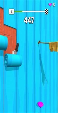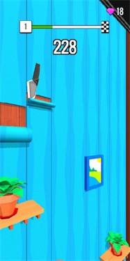 车顶轨,将你家的墙壁纸全都铲下来,以旧换新,但是要注意墙上的摆架,比如花盆、书籍等等,这些东西都是被固定住的不能被铲除,但是墙上的壁画可以被铲掉,小刀在刚开始的时候是加速向下的状态,需要你点击屏幕让小刀铲一下墙皮,小刀就会蹦起来,然后继续下落,掌握住核心后将会非常好玩。