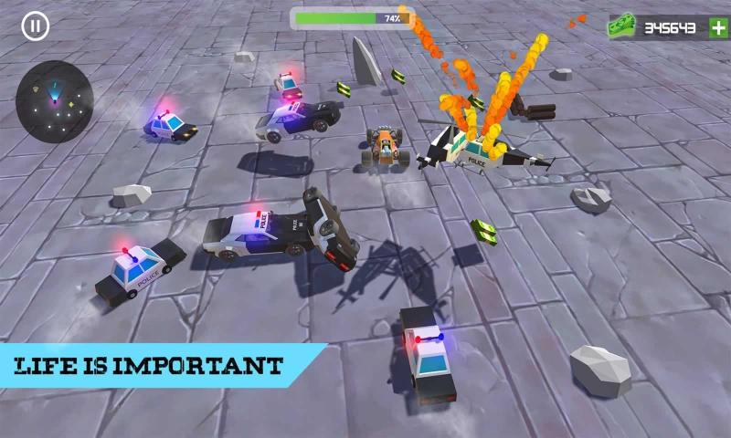 1、一款以警车驾驶抓捕罪犯为主题的赛车游戏,卡通风格简约,3D场景逼真;