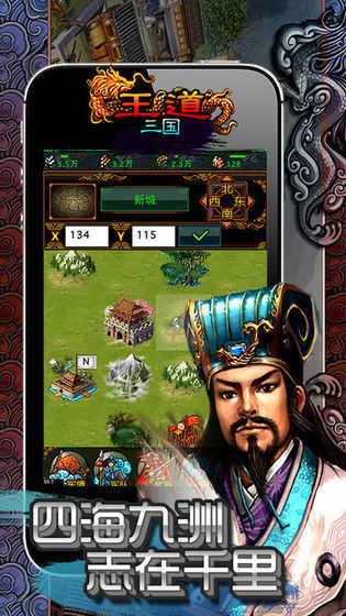 王道三国是国内策略手机网游颠峰巨作,体验最纯正的三国文化,争夺江山,拥抱貂蝉,赛曹操比刘备.吕布,关羽,诸葛亮,司马懿,数百文 武大显神威.骑兵,步兵,弓箭,风雷战车数十兵种,千军万马一声号令.做圣明君主,完成一统大业,谱写崭新王道历史。