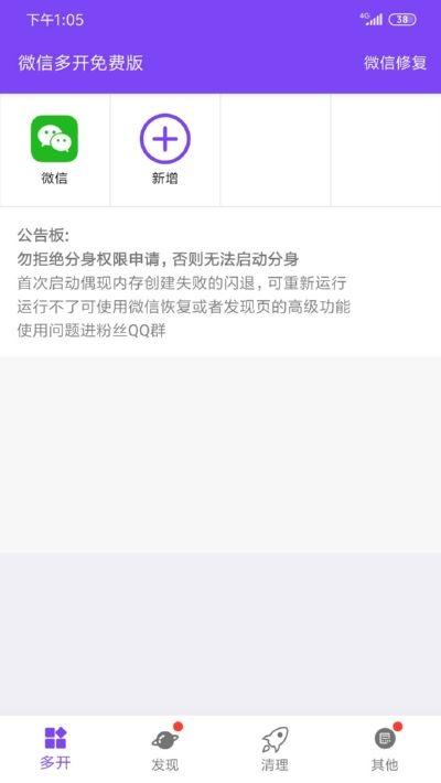 微信多开免费版,为微信分身用户提供完全免费的分身版体验,产品利用安卓虚拟化技术,使用户仅用一部手机即可同时运行多微信分身版