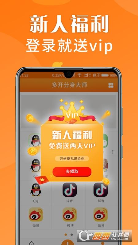 应用多开分身双开助手vip去广告版是一款免费实现双开应用的软件,帮助用户手机的应用进行多开分身,一个手机上开启多个微信钉钉等账号,安全不封号、稳定不卡顿。需要的朋友快来下载使用。