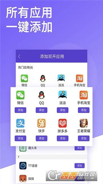 软件支持几乎所有应用双开或者多开,多个账号同时在线;