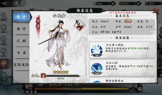 除了提升单体侠客的战力之外,还可以通过提升所有侠客的总战力,为自己的侠客提供属性加成。可以通过招募收集更多的侠客,同时适当分配资源提升其他侠客的战力,来升级武穆遗书,武穆遗书的等级越高,能够给予侠客的战力加成就越大。