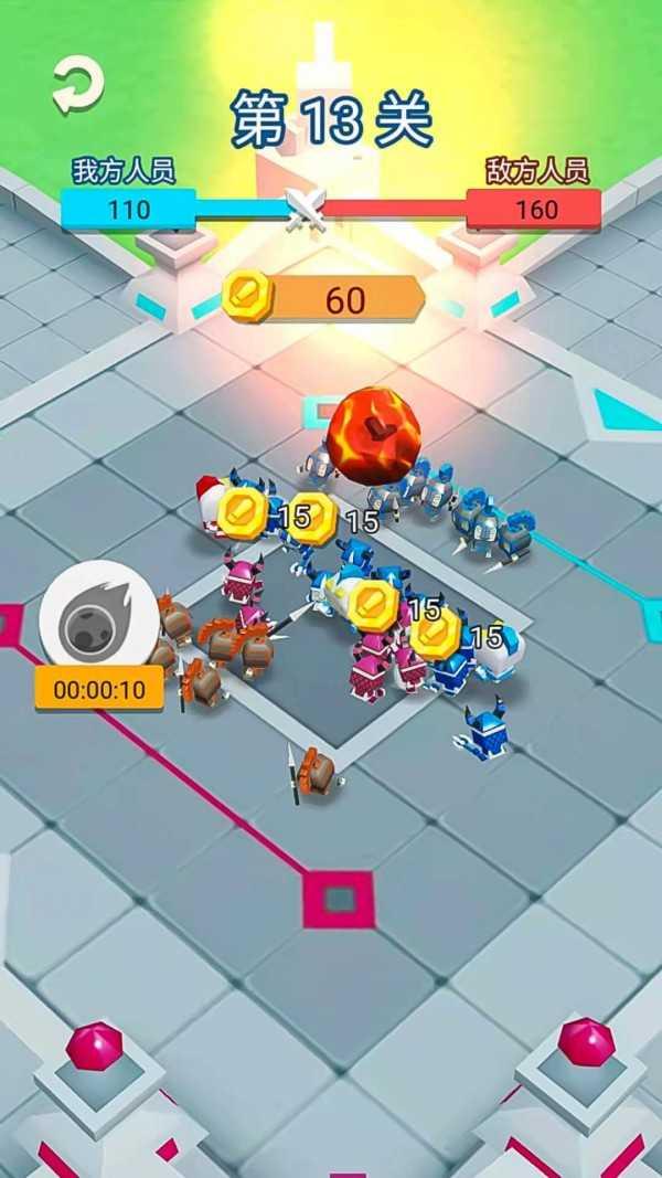 2、用你的军队去和别的队伍比赛,赢的人就可以吞噬所有士兵。