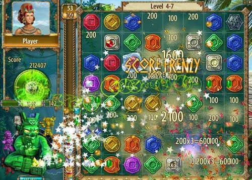 3、上手度:在规定的时间内,消除镶有宝石的图腾,达到指定的宝石数量便可过关。消除规则采用了常见的玩法,在出现新的道具时,游戏中会有提示和说明来指导玩家使用。