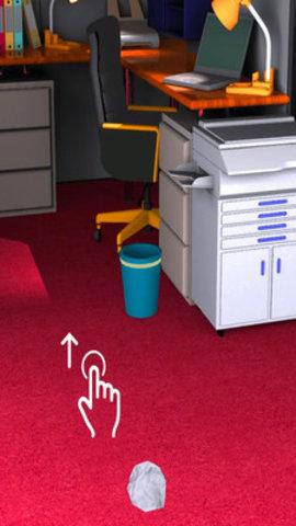 游戏的操作相当简单,画面的不同方向有不同的互动物件让玩家砸,比如老板啊,垃圾桶啊。玩家只需要考虑旁边电风扇风速的大小,其他就凭你指尖那轻轻一挥,通过手指方向的指示,纸团抛出一段完美的弧线。可以简单的说,纸团的扔中或仍偏,全靠在玩家一指之间。