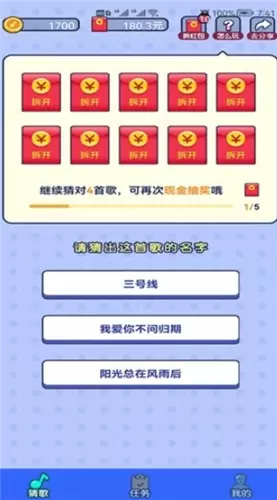 是真的,游戏内所有猜歌获得的红包玩家均可以自由进行提现,面对不同的挑战内容你可以自由选择进行挑战,会有更多不同的玩法更多不同的挑战等你来完成,多样的歌曲类型不同难度的关卡都会增加你的挑战乐趣,实时更新的乐库会有更多全新的歌曲等你挑战,不断完成更多任务。