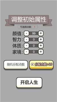 根据之前选择的天赋,调整初始属性,点击“开始新人生”。不断点击屏幕,可以进入到下一岁,