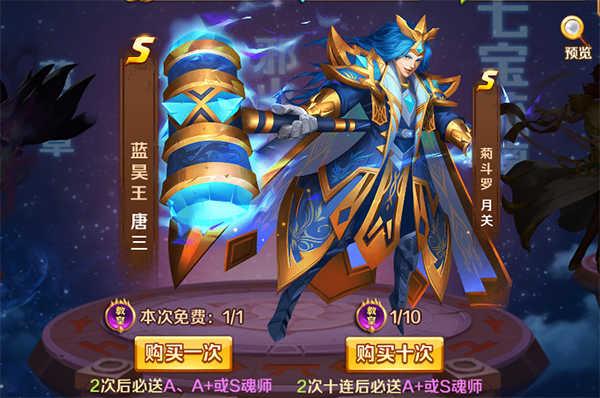 购买VIP0礼包,其中的魂殿教皇令基本第一次必定能抽取出一个A级魂师,再跟着主线走,领领宝箱打打斗魂场,随随便便就能攒够2590钻石后10连抽,如果充钱的,建议再来一次10连抽,因为这样加上开服活动送的基本保证你拥有4个A+魂师,运气好的手里应该也有1-2个S级魂师,这样阵型就够了。