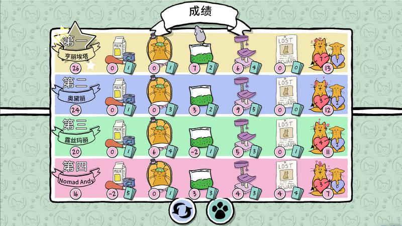 游戏中,你和你的猫女好友一回合可以抽3张牌,把玩具、食物、猫薄荷、服装,当然还有可爱的猫咪们通通收集起来。不过你要小心!一定要确保有足够的食物来喂猫,不然会被扣分。