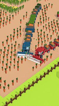欢乐萝卜农场是一款十分休闲解压的趣味农场游戏,玩家在游戏中将驾驶一辆收割机在田野里尽情收割庄稼,将农作物收集起来放在车头后面,越拉越长,趣味十足,还有一点解压,感兴趣的小伙伴快来下载试试吧。