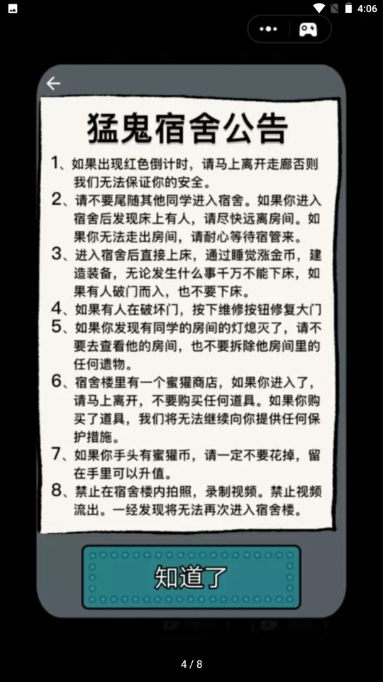 1、手游内消灭们危险的猛鬼,成功的打败宿舍,成功的打败我们的猛鬼