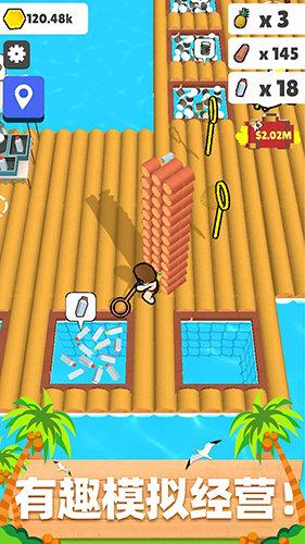 1、不断打造更多的建筑物,扩张、探索小岛,搭建房屋、小船等。