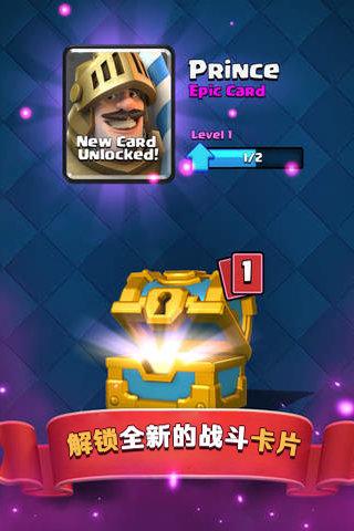 收集并升级你喜欢的部落冲突力量、法术和防御装备卡牌,以及皇室角色:王子、骑士、幼龙等。击败国王和公主的塔打败了对手,赢得了格斗场的奖杯、皇冠和荣耀。组织部落分享卡片,建立你的战斗社区。带领你的皇家冲突家族走向胜利!