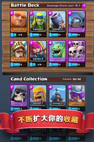 收集并升级你喜欢的部落冲突力量、法术和防御装备卡牌