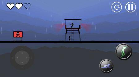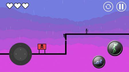 2.游戏中控制火柴人爬上去,一路上会遇到各种陷阱。