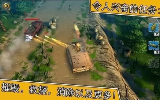 用光滑的触摸控制来移动你的小队,释放枪林弹雨和用手榴弹、火箭导弹以及空袭消灭敌人的坦克。