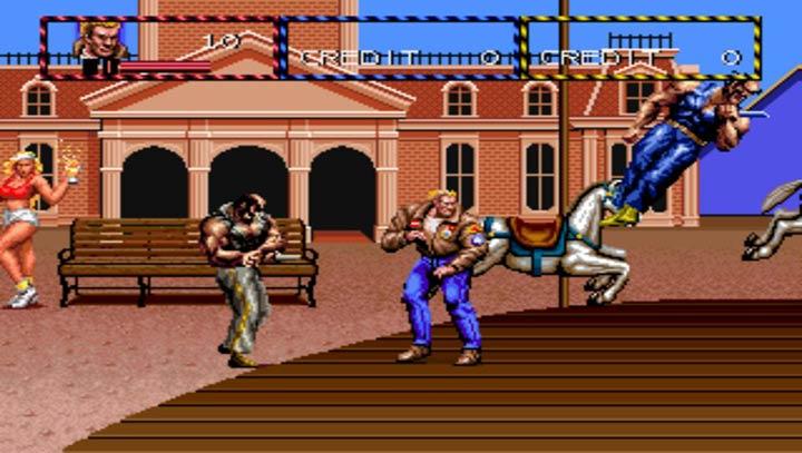 当年的SNK总是追随着CAPCOM的脚步, 这部《热血快打》就与当时的《快打旋风》有着异曲同工之妙。虽然MVS基板的机能无法与CPS1相比,但是游戏呈现出的效果还稍微能说得过去。