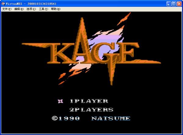 NATSUME公司在红白机时代推出了一款请版过关游戏。Kage的游戏方式直截了当,主角虽然不能在墙壁上跳来弹去,却能用钩子直接翻上天花板——这一设定为后来的所借用。游戏不仅音乐很酷,音效也很到位,尤其是每次攻击时所发出的"HA!"声(通过数字采样),让人很湿。新增的双打模式让你有了与朋友协作的乐趣。