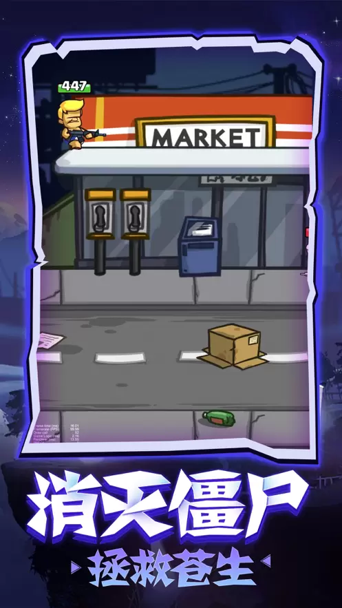 在你生活的城镇中,突然有一天出现了大量的僵尸为了生存下去,小伙伴必须使用所有的武器来消灭僵尸,将僵尸所有击退,保护自己的安全