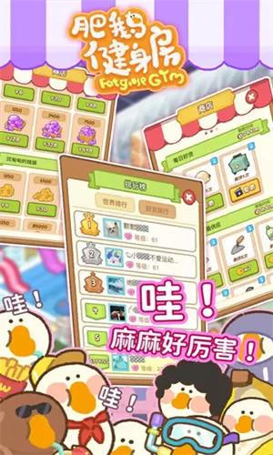 说明:游戏已破解,免除广告获得奖励!《肥鹅健身房破解版》是一款非常有趣的经营策略类手机游戏,该款游戏采用了精致Q版动漫而设计,其玩法非常的有趣,玩家在游戏中需要帮助肥胖的动物减肥,先从基础开始,运动设施非常多,各种项目这里都有,完成相应的健身指标,在通过阔张和打扮健身房,吸引更多的客户,此版本已破解去除了广告,欢迎感兴趣的朋友下载。