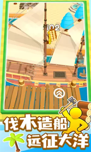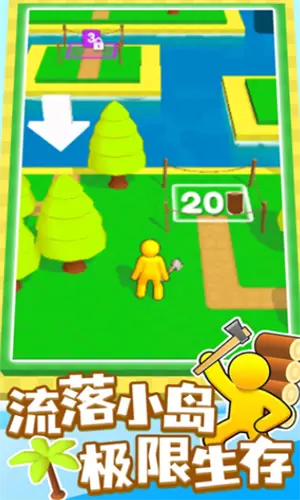 2、玩家需要达到不同的木材,材料要求才能扩张小岛,搭建房屋,小船。