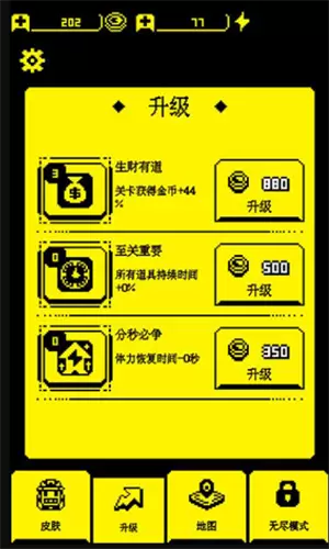 2、游戏风格采用黑色和黄色像素风格,整个画面看起来非常舒适,给您一种完美的视觉体验;