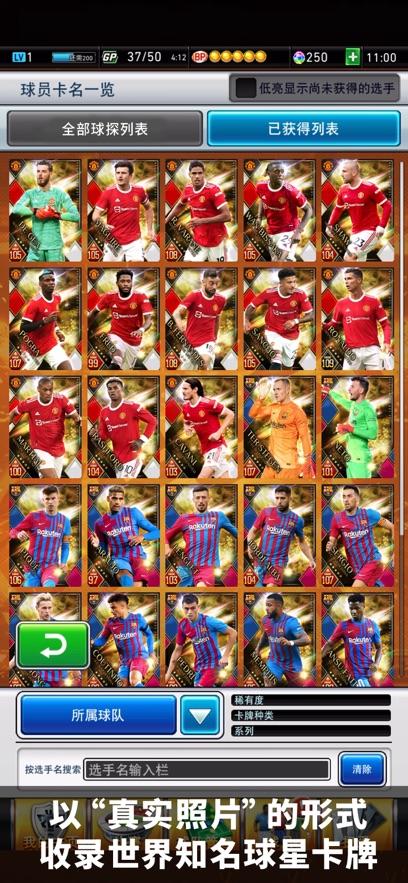 实况王者集结四周年版本是一款足球题材的卡牌类游戏,玩家将会收集各个国家知名足球俱乐部球员卡牌,让你在游戏中通过放置卡牌的方式来展开激烈的足球对战模拟。巴塞罗那、尤文图斯、拜仁慕尼黑等世界强队将会与你共同比拼。