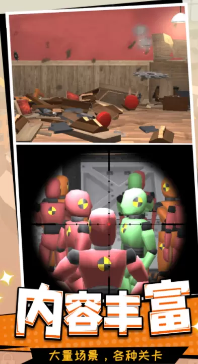 2、不断挑战各个关卡,尽情去射击摧毁大量的物品,拆除不同的建筑;