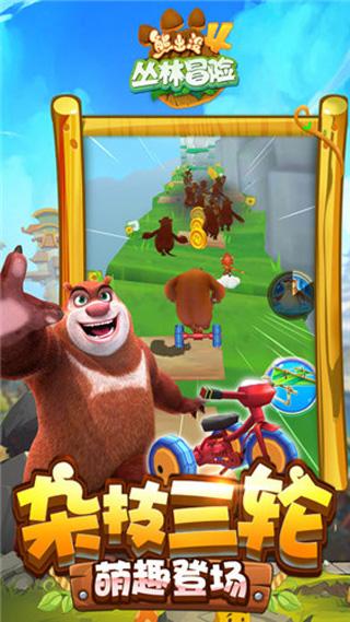 「熊出没4丛林冒险」游戏中游戏高度还原动画人物,熊大、熊二为了拯救森林又开始了一场新的冒险之旅,关卡设计全面优化,游戏节奏感更强,熊大、熊二的跑酷之旅更加精彩。